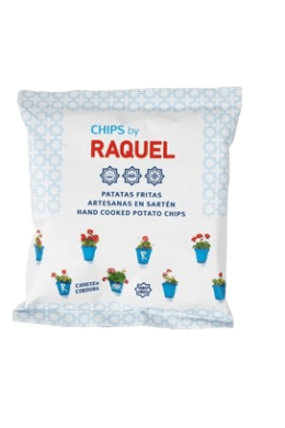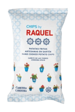 Chips By Raquel” son patatas fritas artesanas, al estilo tradicional, de fritura en sartén que nació en Cañete de las Torres (un pequeño municipio de la provincia de Córdoba) en 1985. Actualmente se mantiene la esencia, como la fritura en sartén, pero se ha mejorado y modernizado tanto el sistema de producción como las materias primas: patata agria nacional, coupage de AOVE (Aceite de Oliva Virgen Extra) y girasol alto oleico para obtener un producto excelente y constante.